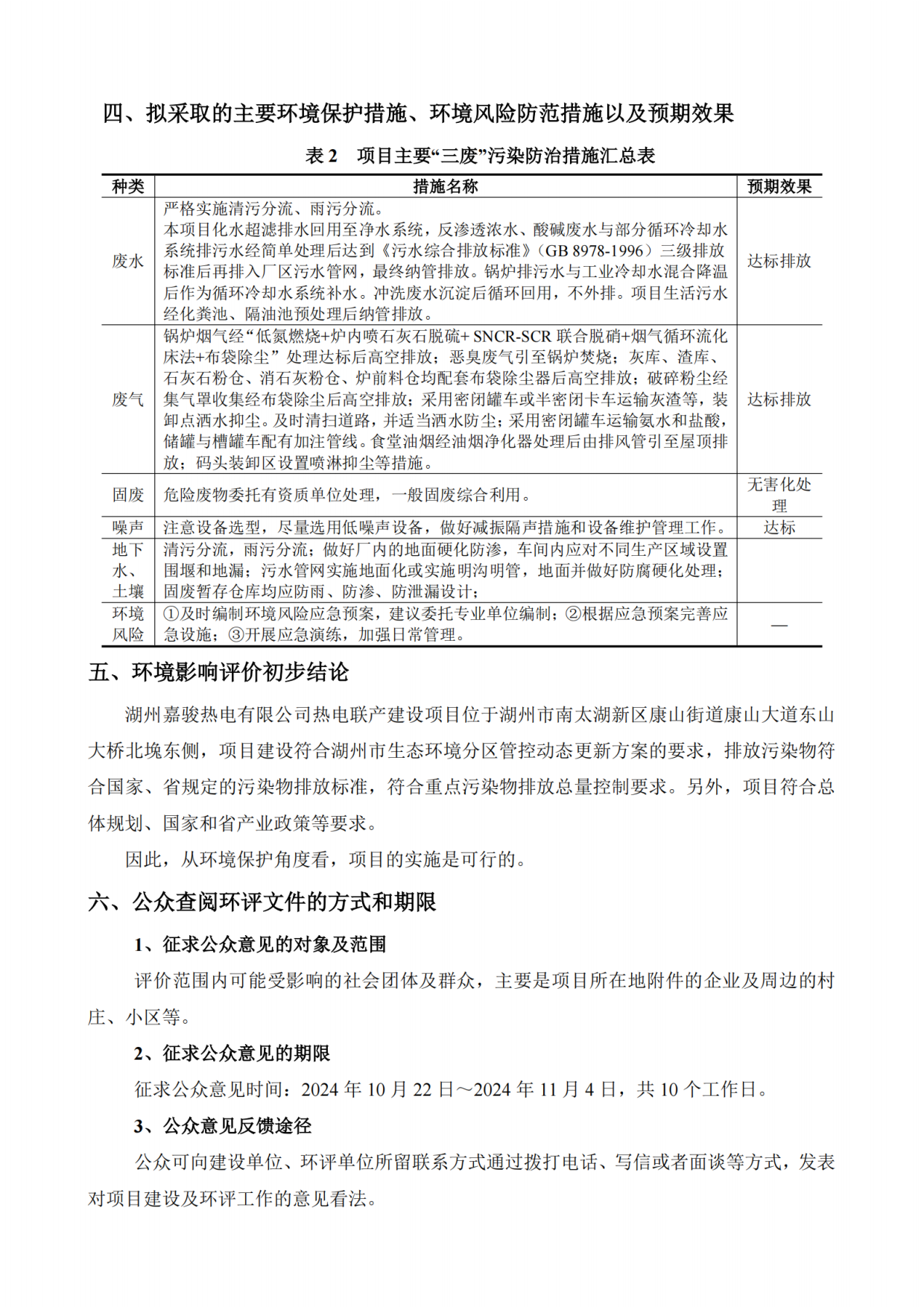 湖州嘉駿熱電有限公司熱電聯產建設項目環境影響評價公示
